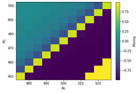 hepi.slha_data(li,["NMIX",(nm1,nm2)]),logz=False,xaxis="$M_1$",yaxis="$M_2$",zaxis="Mixing")